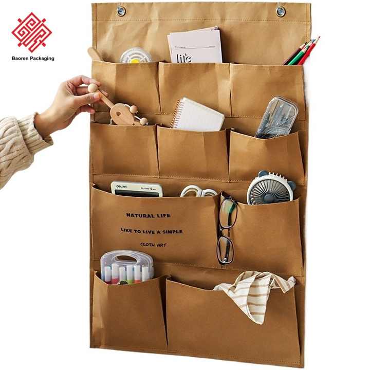Bolsa de Almacenamiento de Papel Kraft Lavable Estilo Japonés, Organizador Multiusos para Colgar en la Pared, Junto a la Cama o Detrás de la Puerta, para el Orden del Hogar