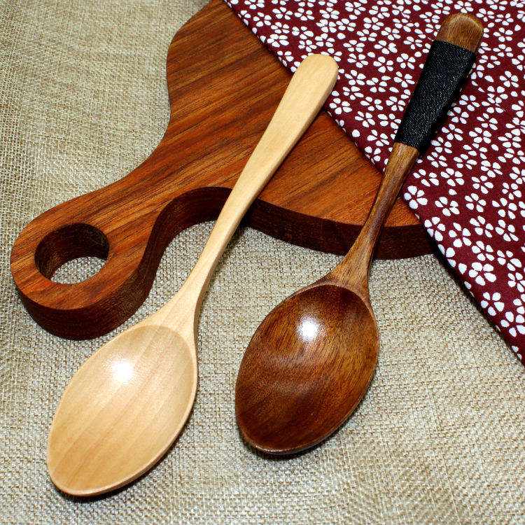 Cucharas de madera estilo japonés de color sólido y cuerpo recto para arroz, sopa y uso infantil.