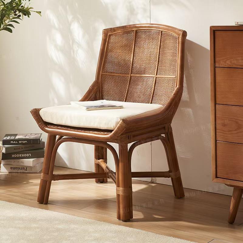 Silla de Comedor Retro de Ratán Japonés Auténtico - Ecológica, Duradera, para Uso en Hoteles, Silla Individual