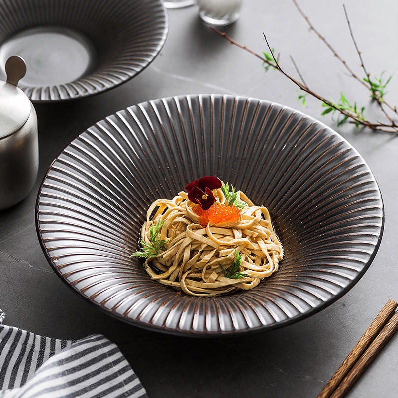 Juego de Vajilla Japonesa Vintage, Tazón Grande de Cerámica para Sopa o Ramen, Tazón Tipo Trompeta Mogashin para Restaurantes Comerciales, Vajilla para Comida