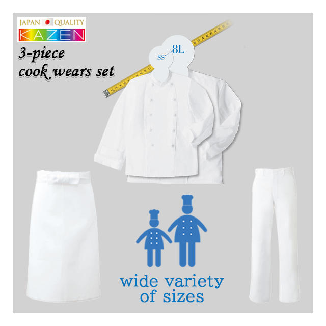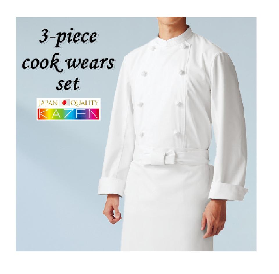 "El cocinero de 3 piezas usa el juego" (abrigo del cocinero, delantal y pantalones de los hombres)