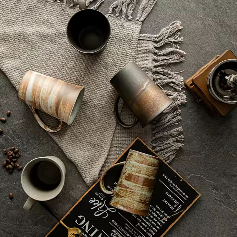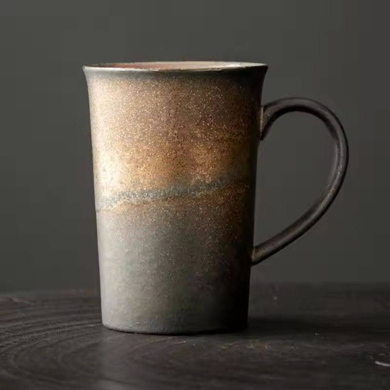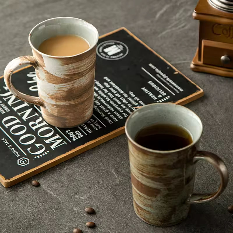 Taza de Café Grande de Cerámica Rústica Estilo Japonés, Hecha a Mano, Resistente al Calor, de Porcelana Fina, para Uso en Casa u Oficina
