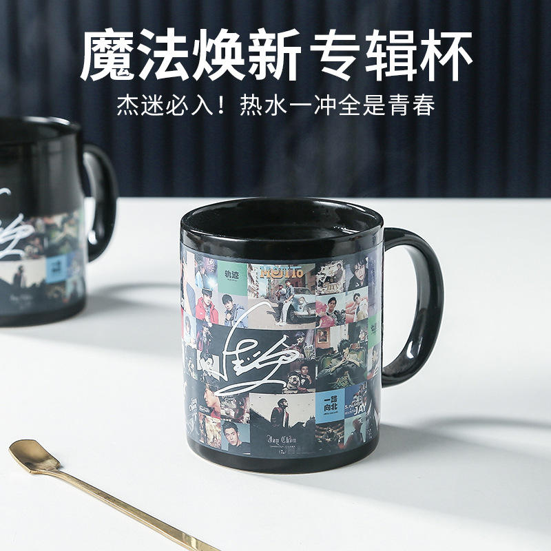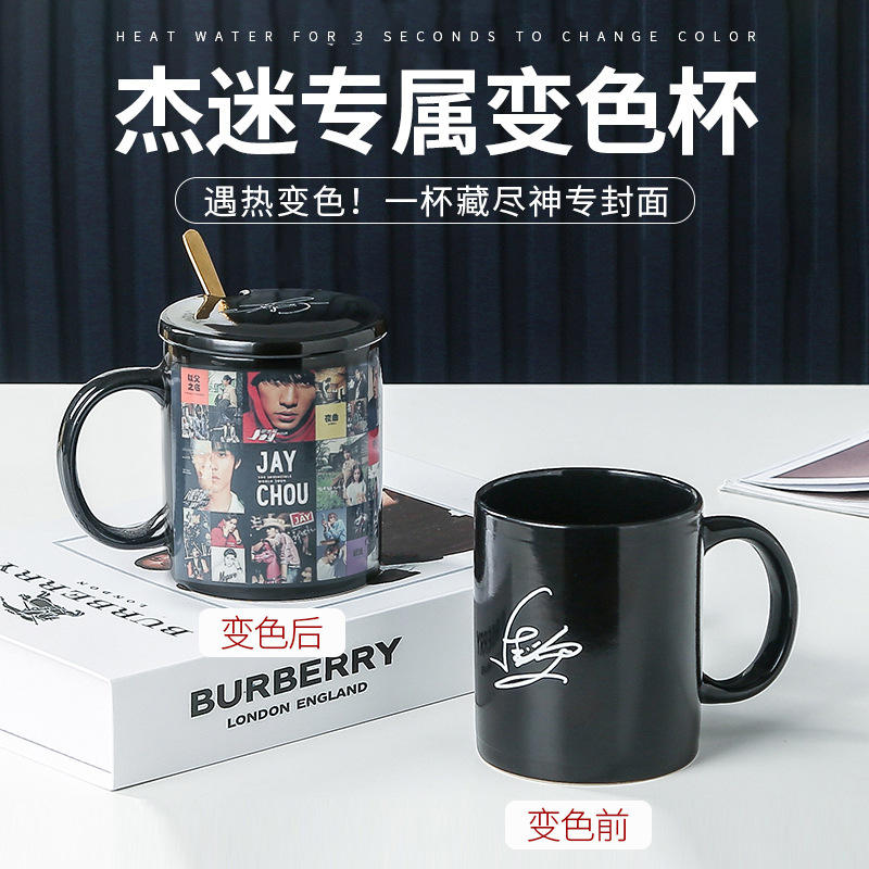 Taza de cerámica que cambia de color con foto de Jay Chou, 301-400 ml, regalo con tapa y cuchara