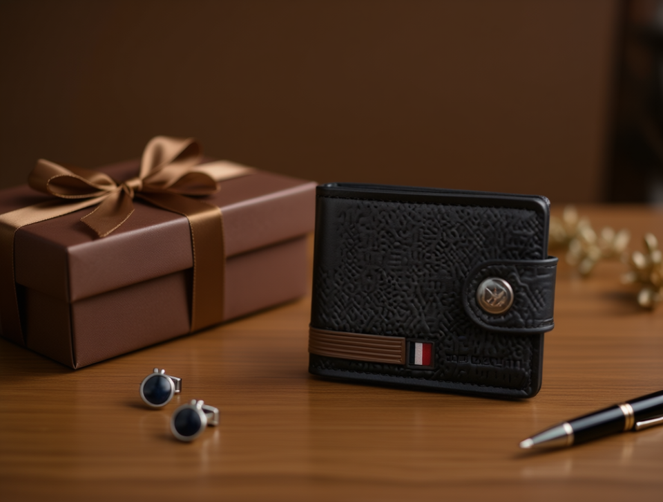 Cartera de Hombre Jd con un Solo Botón, Mini Cartera de Cuero Genuino de 5 Pulgadas, Set en Caja de Regalo