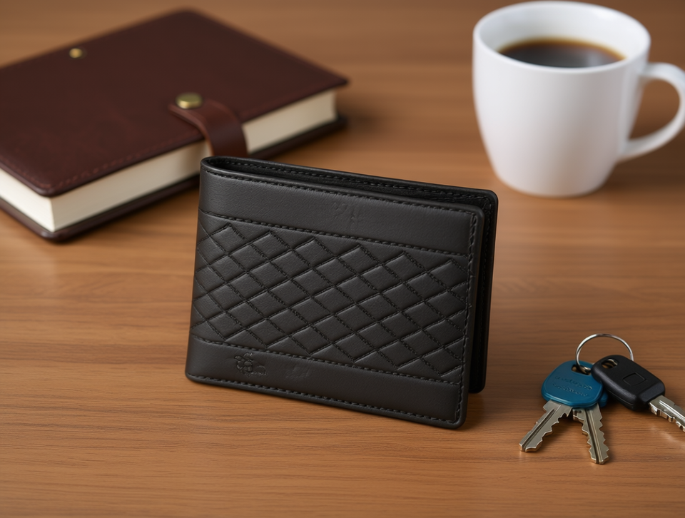 Cartera para Hombre Jd de 7 Pulgadas, Cuero Genuino, Patrón Geométrico, Cierre Plegable, Ideal para Regalo