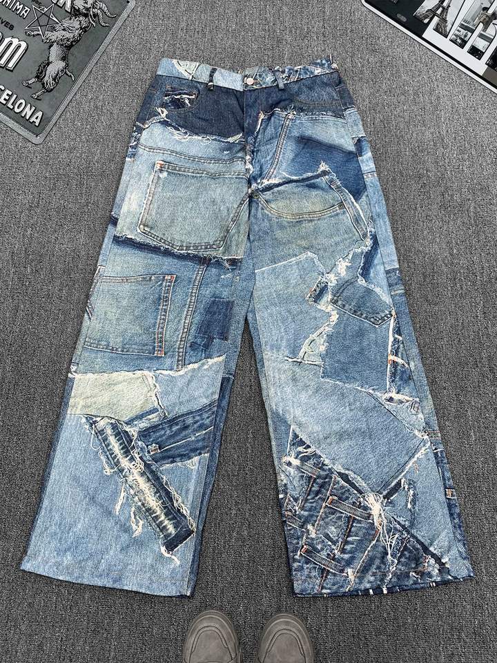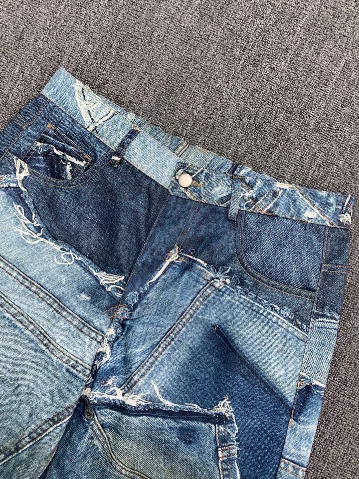 Jeans Azul Oscuro para Hombre y Jeans Bling para Hombre en Diseños Originales de Patchwork, Holgados o Desgastados con Lavado Vintage
