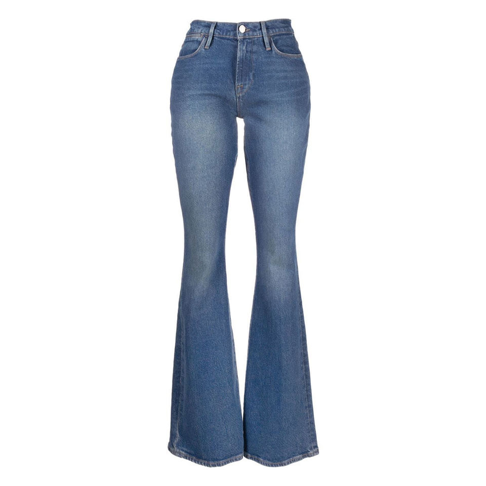 Pantalones Vaqueros con Color y Diseño Personalizados, Logotipo Bordado, Pantalones Acampanados de Mezclilla para Mujer con Pedrería, Jeans Acampanados Lavados para Dama