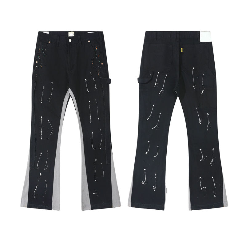 Jeans Apilados Pintados y Lavados Estilo Gallery Dept de Mezclilla para Hombre, Pantalones de Leñador de Retazos Holgados Y2K Acampanados de Talla Grande Tipo Cargo
