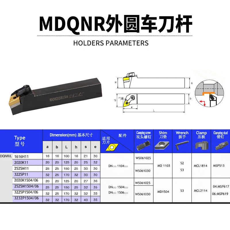 Portaherramientas de torneado de torno CNC Jeekvisen MDQNR utilizado para insertos de torneado de círculo exterior