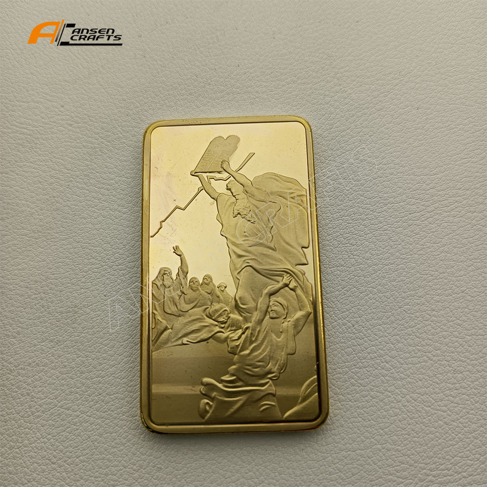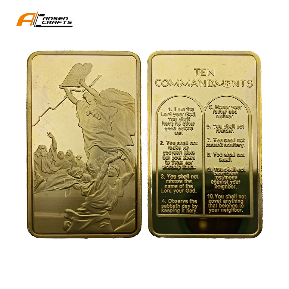 Moneda de metal con barra chapada en oro de 10 mandamientos crucificado de Jesucristo en cápsula