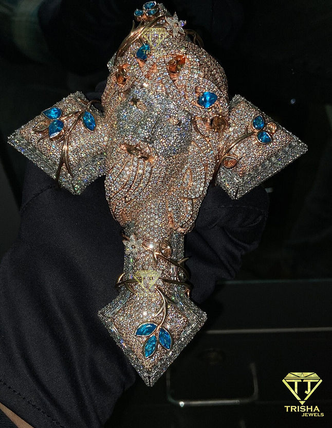 Jesus Cross Iced Out Hip Hop Colgante Cuchillo oculto VVS Diamantes cultivados en laboratorio con plata de ley 925