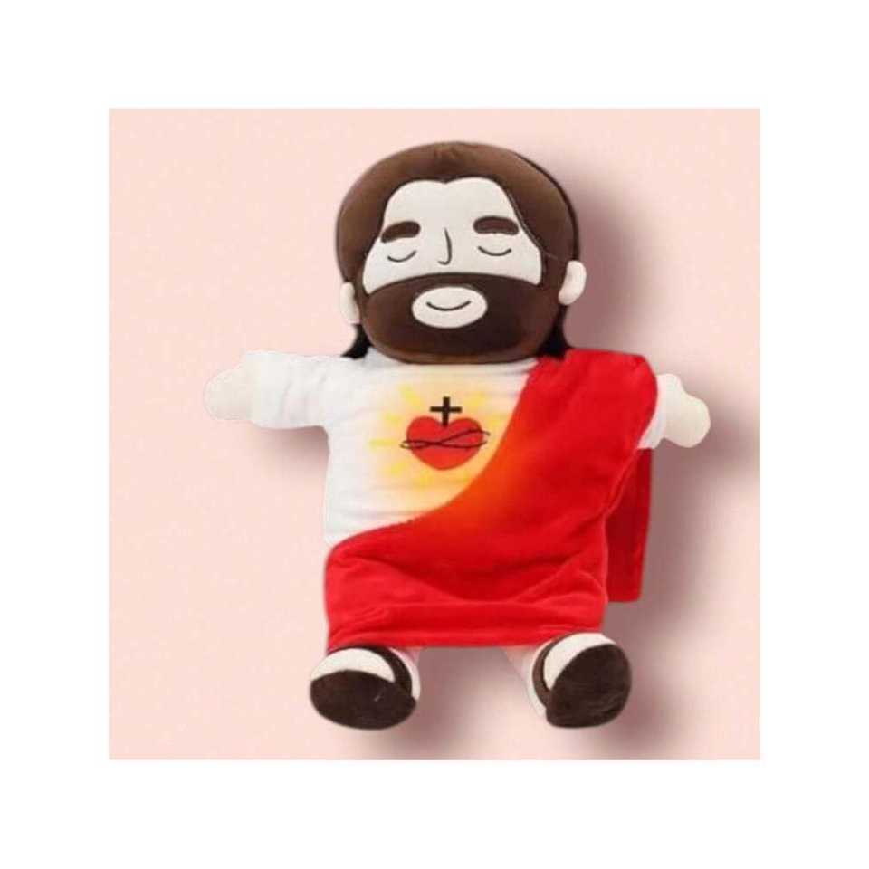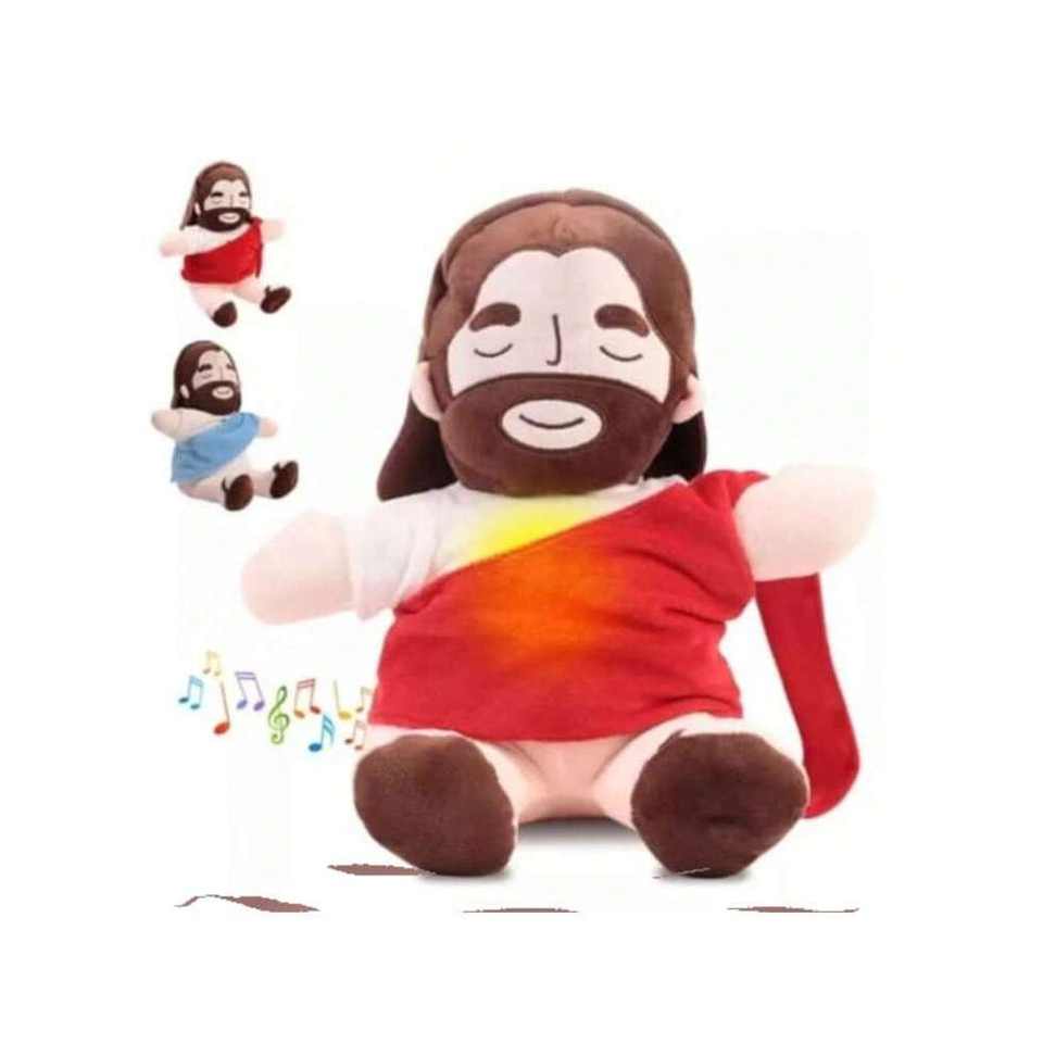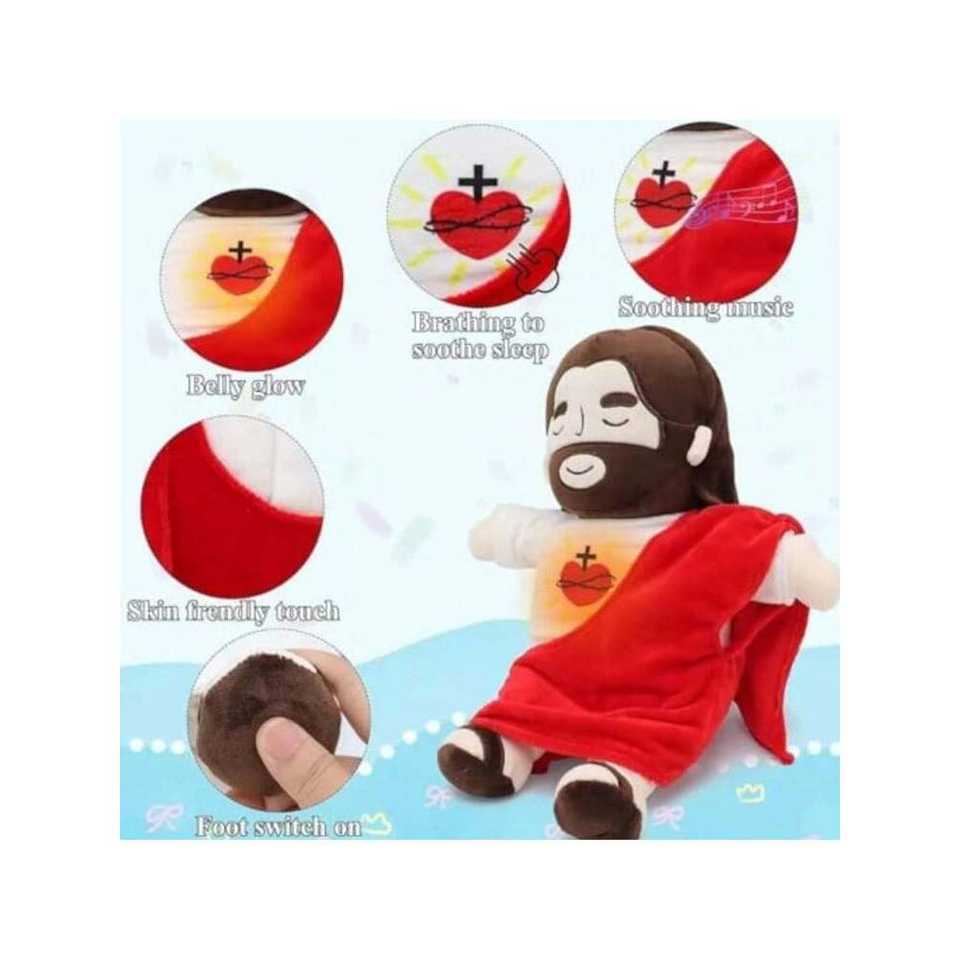 Juguete de peluche electrónico Jesús respira luz sonido relajante interactivo Dios muñeca función Musical iluminación movimiento de pecho suave para