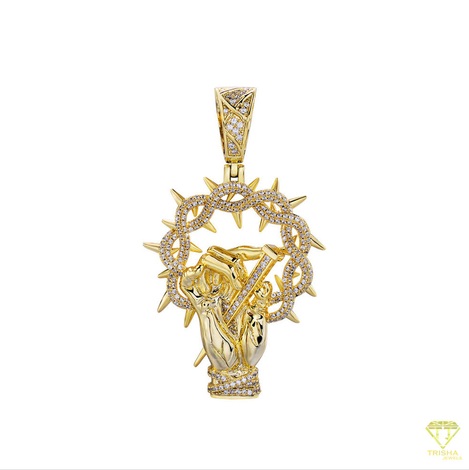 Jesús oración Moissanite colgante manos encanto religioso con corona de espinas colgante diamante Bling joyería