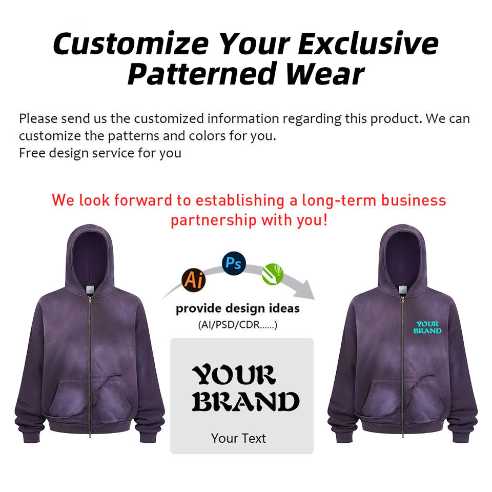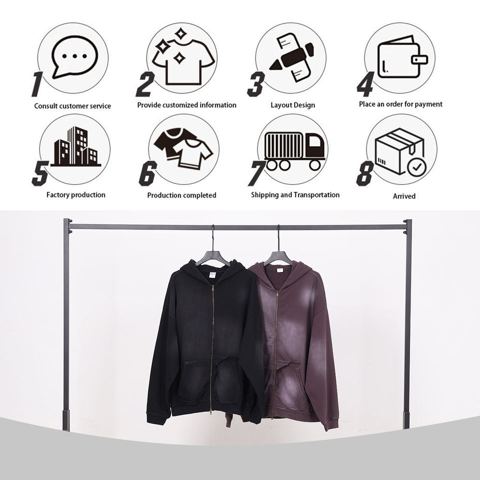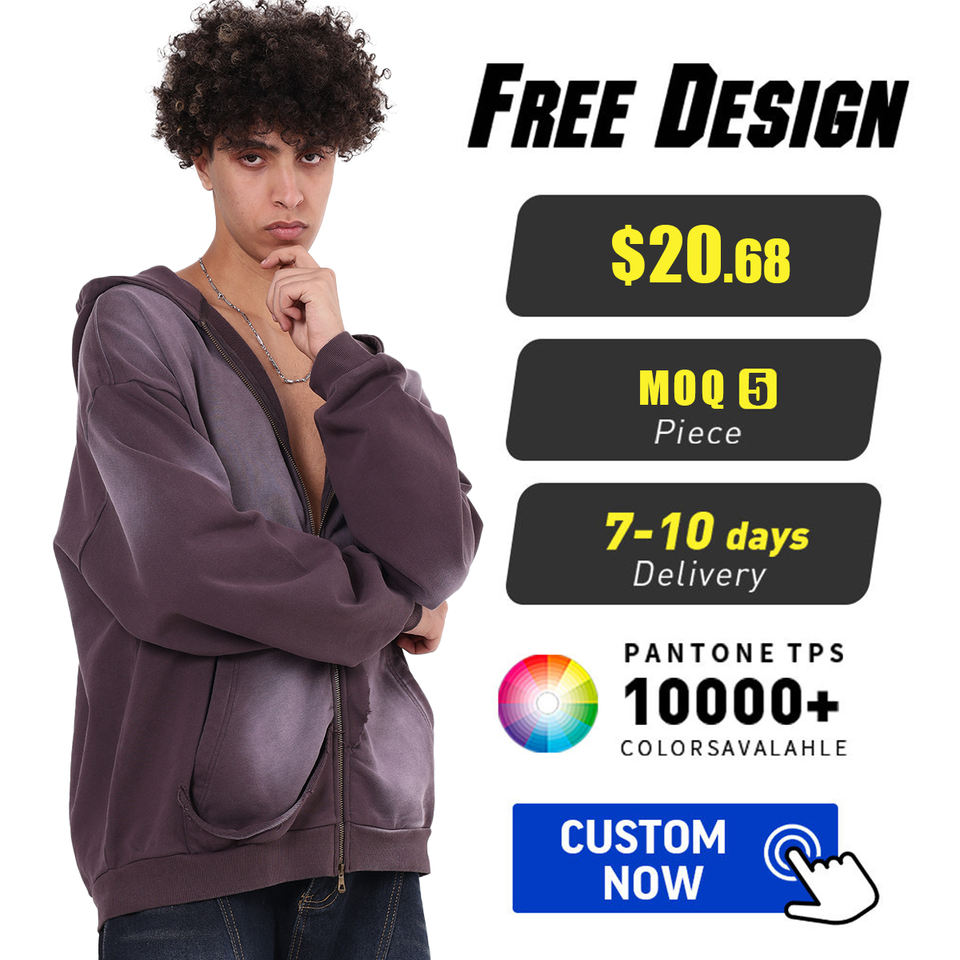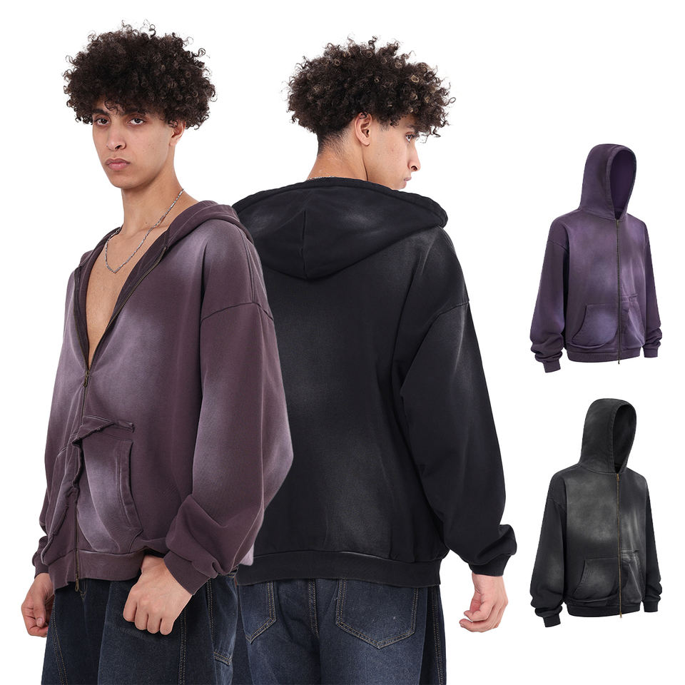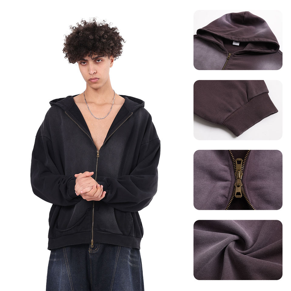Sudadera con capucha retro para hombre con cremallera, de algodón puro de alto gramaje, con bolsillo desgastado y cremallera YKK, de Monleyey Wash