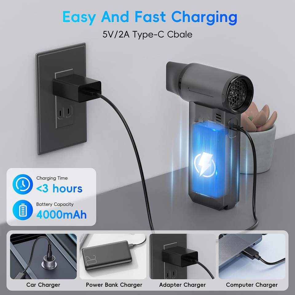 Mini Ventilador Jet Fan: Soplador de Aire Comprimido Eléctrico Portátil de 130,000 RPM, Soplador Inalámbrico de 3 Velocidades, Mini Ventilador Turbo
