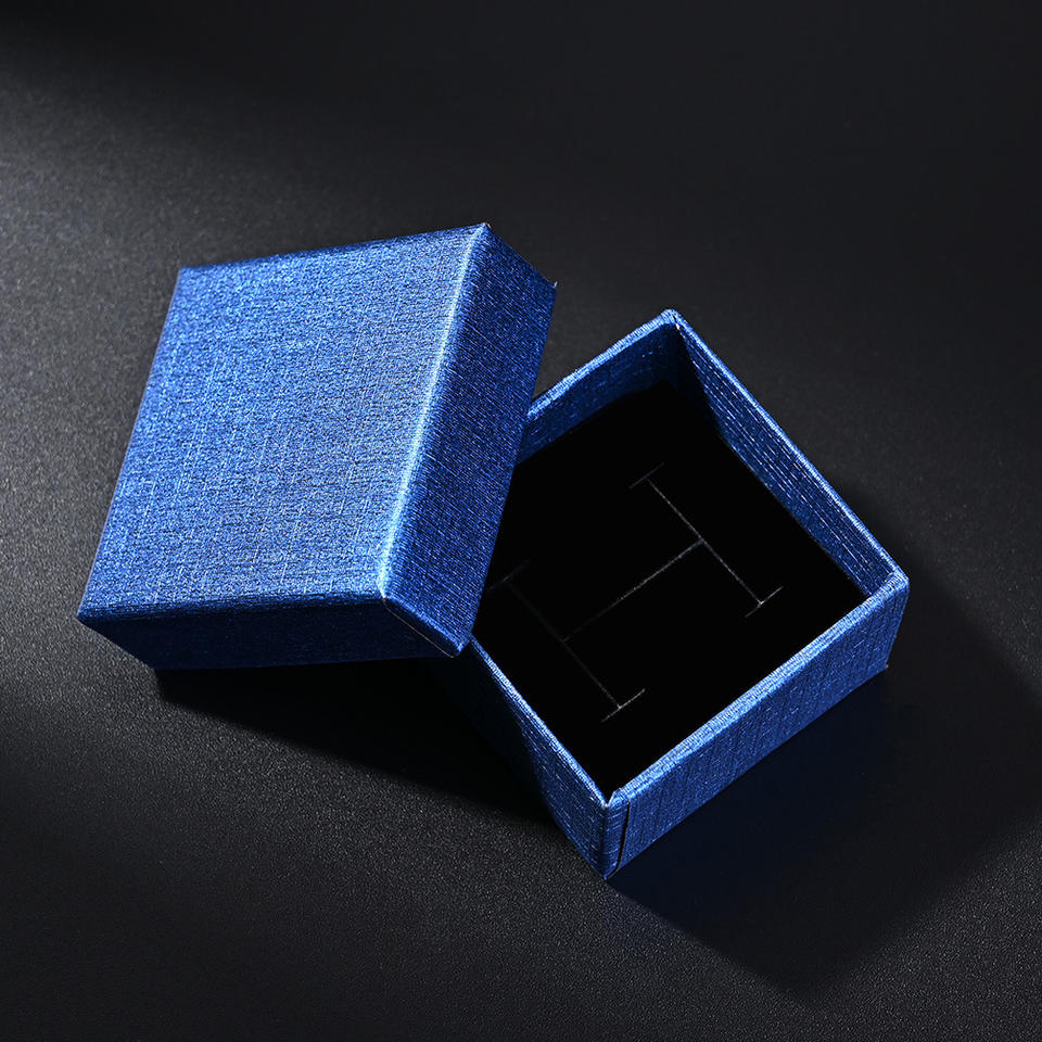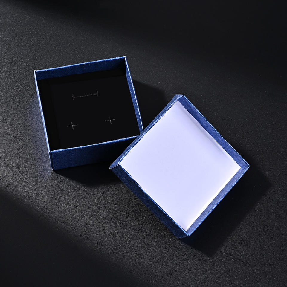 Caja de Joyería Cuadrada Azul de Papel Duro con Rayas Lisas, Personalizable, Caja 002, Empaque para Regalo de Joyería