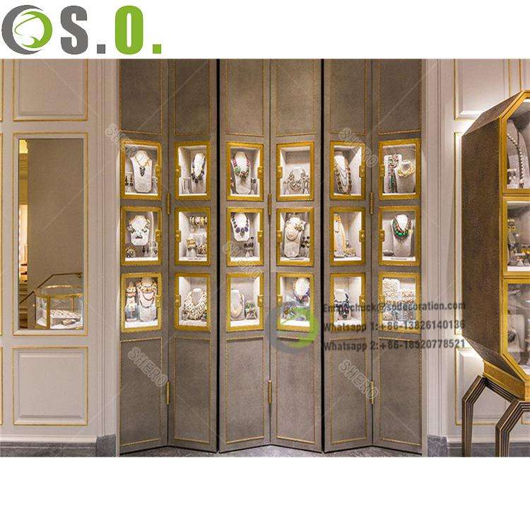 Tienda de exhibición de joyería Escaparate de acrílico de acero inoxidable personalizado para joyería y mostrador