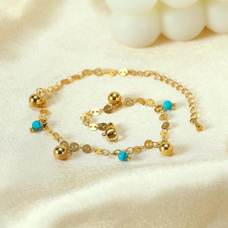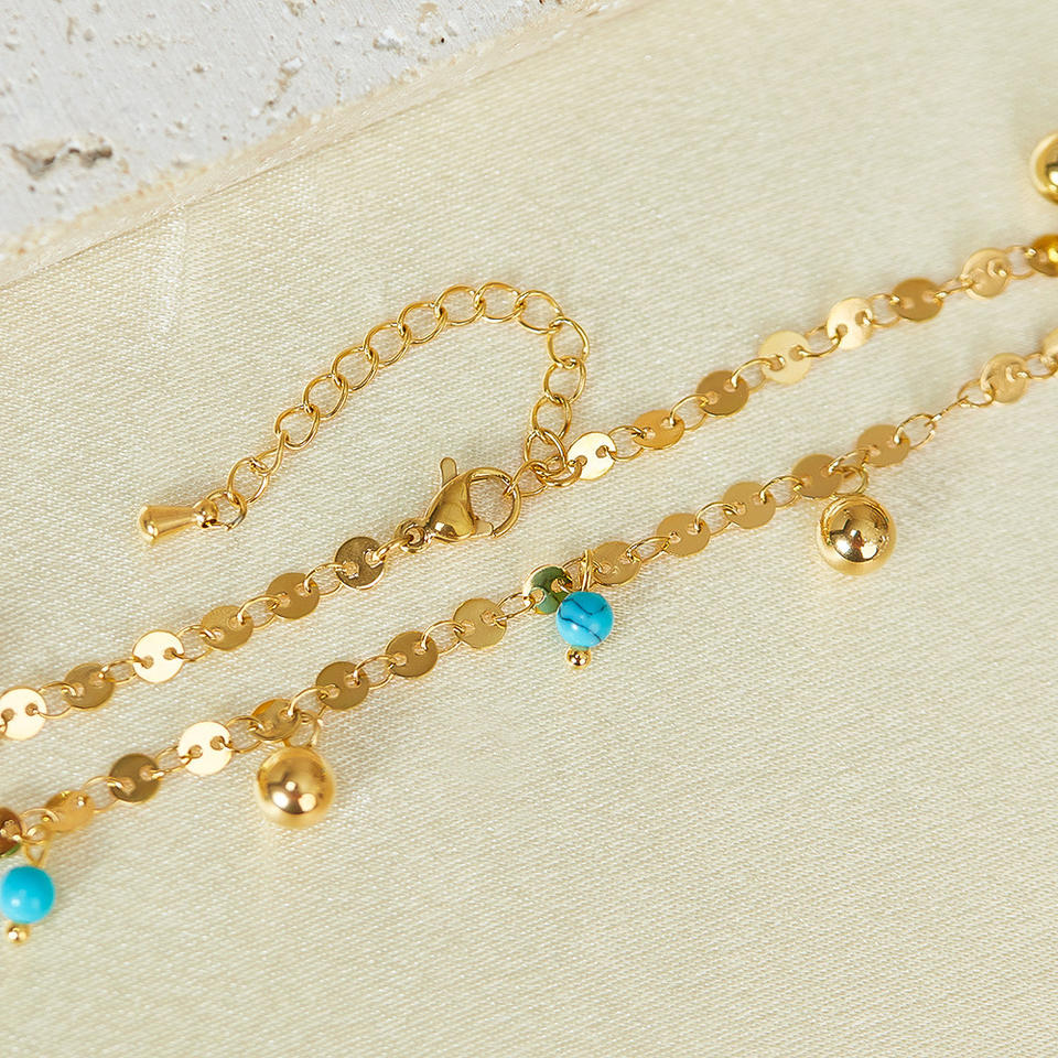 Tobillera de acero inoxidable chapada en oro directa de fábrica de joyería con cuentas de turquesa pulsera de moda impermeable para niñas