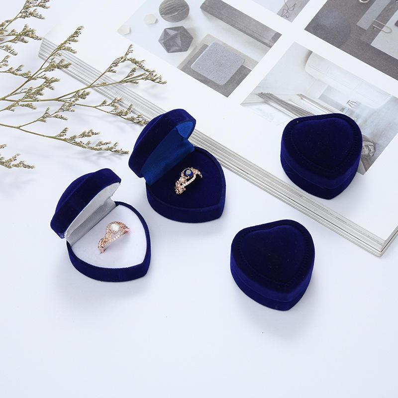 Estuche de Joyería en Forma de Corazón, Caja de Anillos Portátil para Viaje, Estuche de Terciopelo para Anillos, Caja de Joyería