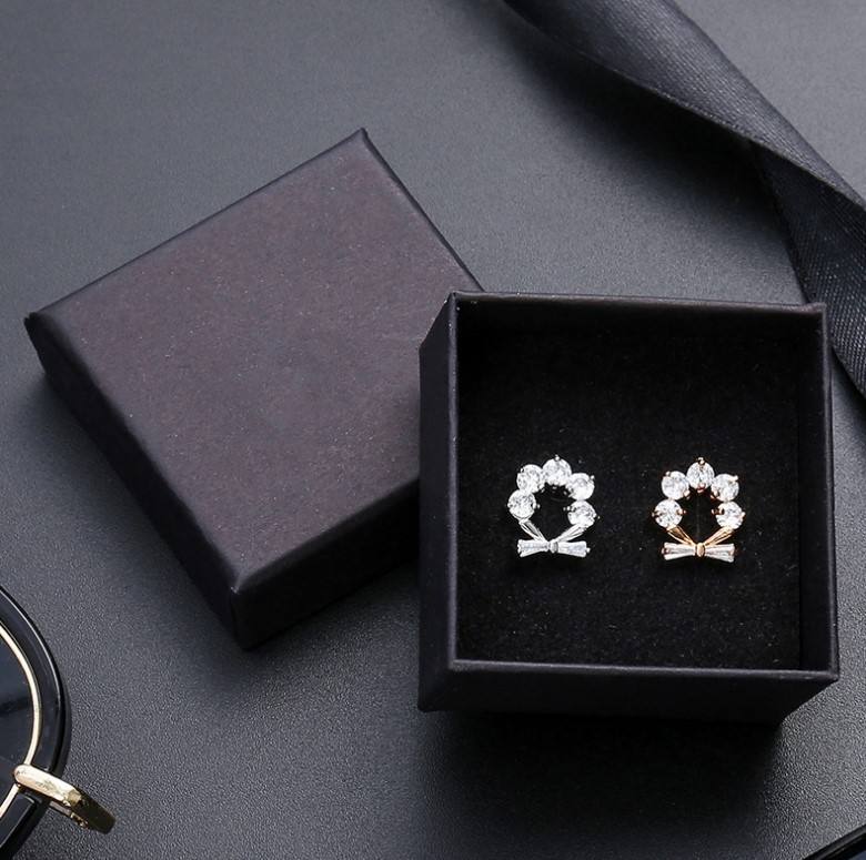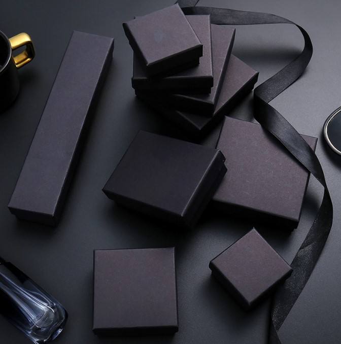 Caja de embalaje para joyería con LOGO personalizado, caja de papel negra para collar, pendientes, pulseras y anillos, caja de regalo expositor