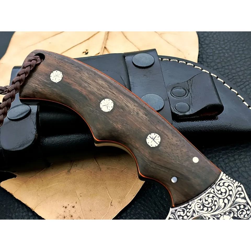 Jexmoo personalizado hecho a mano de acero de Damasco completo Tang Tracker cuchillo mango de madera Funda de cuero OEM regalo de aniversario acampar al aire libre