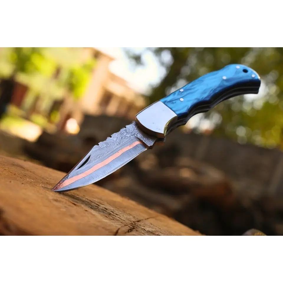 Cuchillo de bolsillo Jexmoo personalizado OEM hecho a mano, multifuncional, de acero de Damasco, de 8 pulgadas, con hoja recta, mango de madera y funda de cuero para