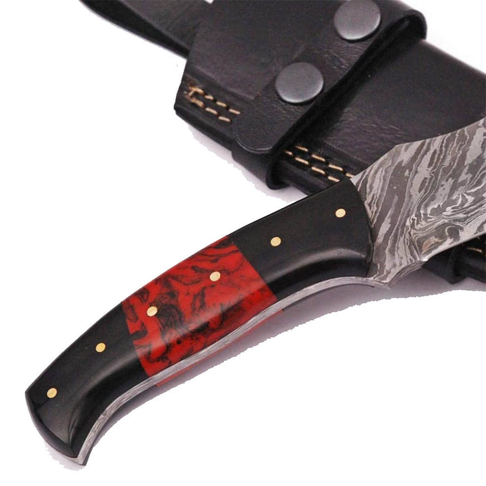 Jexmoo-Cuchillo de acero de Damasco hecho a mano con mango de madera de resina y Funda de cuero, perfecto regalo de caza para acampar