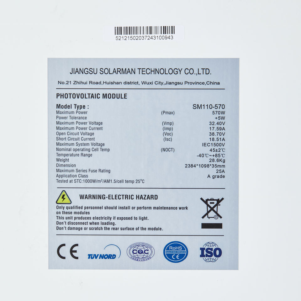 Panel Solar Jiangsu Solarman para Hogar, 210 mm, 110 Celdas, 540w 550w 560w 570w, Panel Solar Monocristalino, Módulo Fotovoltaico para Techo