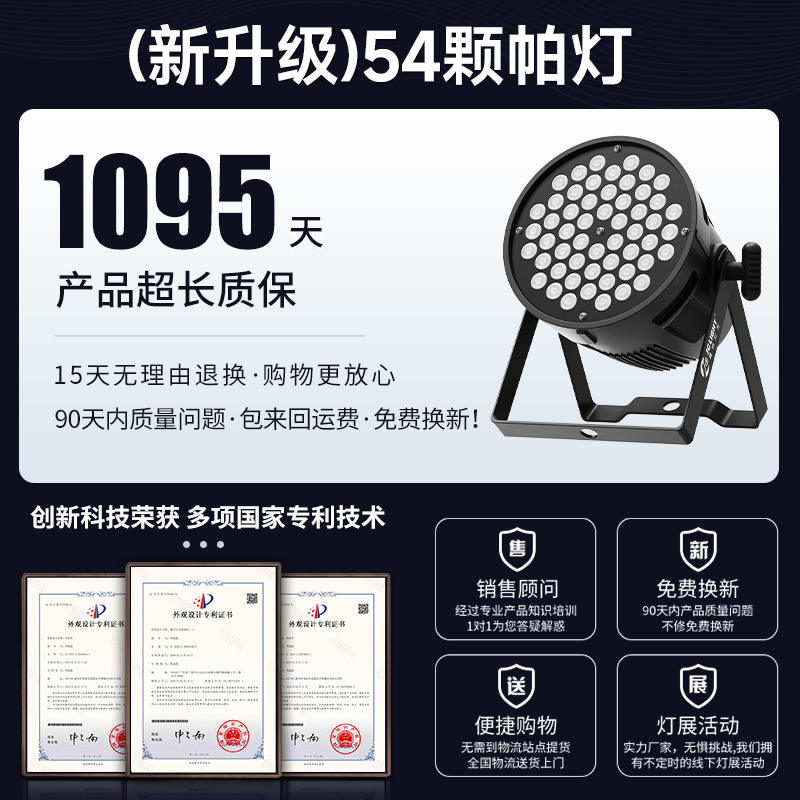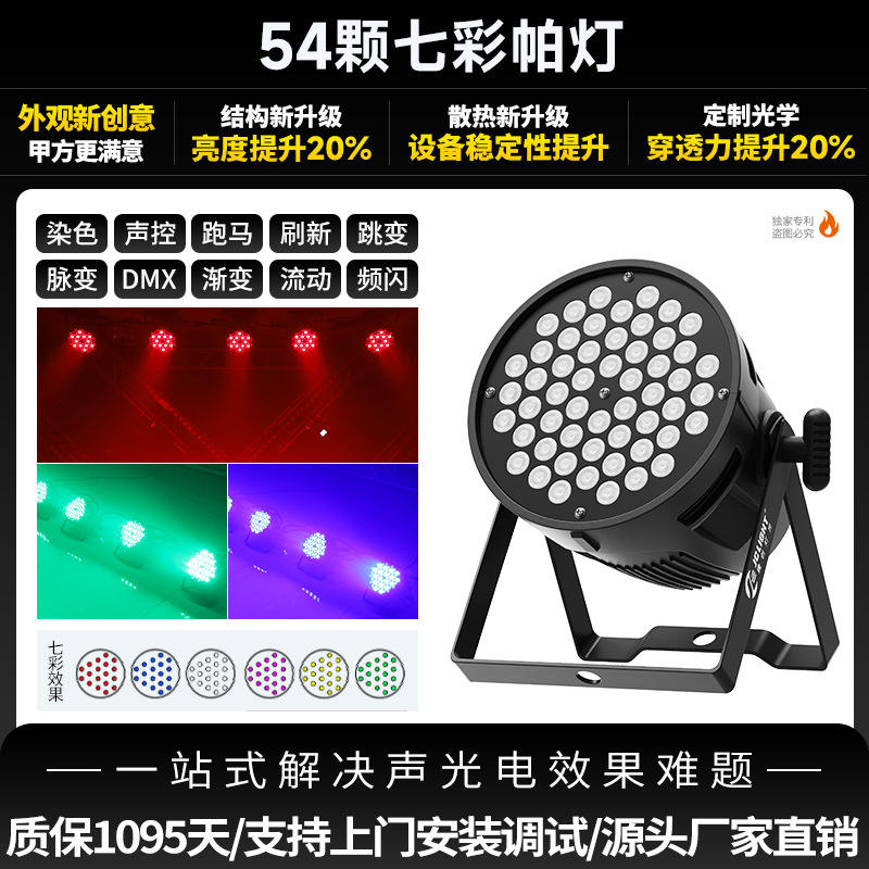 Luz PAR de 54 LED a Todo Color Jiechuang Lighting, Luz RGB para Escenario, Estudio de Danza, Banquete de Bodas
