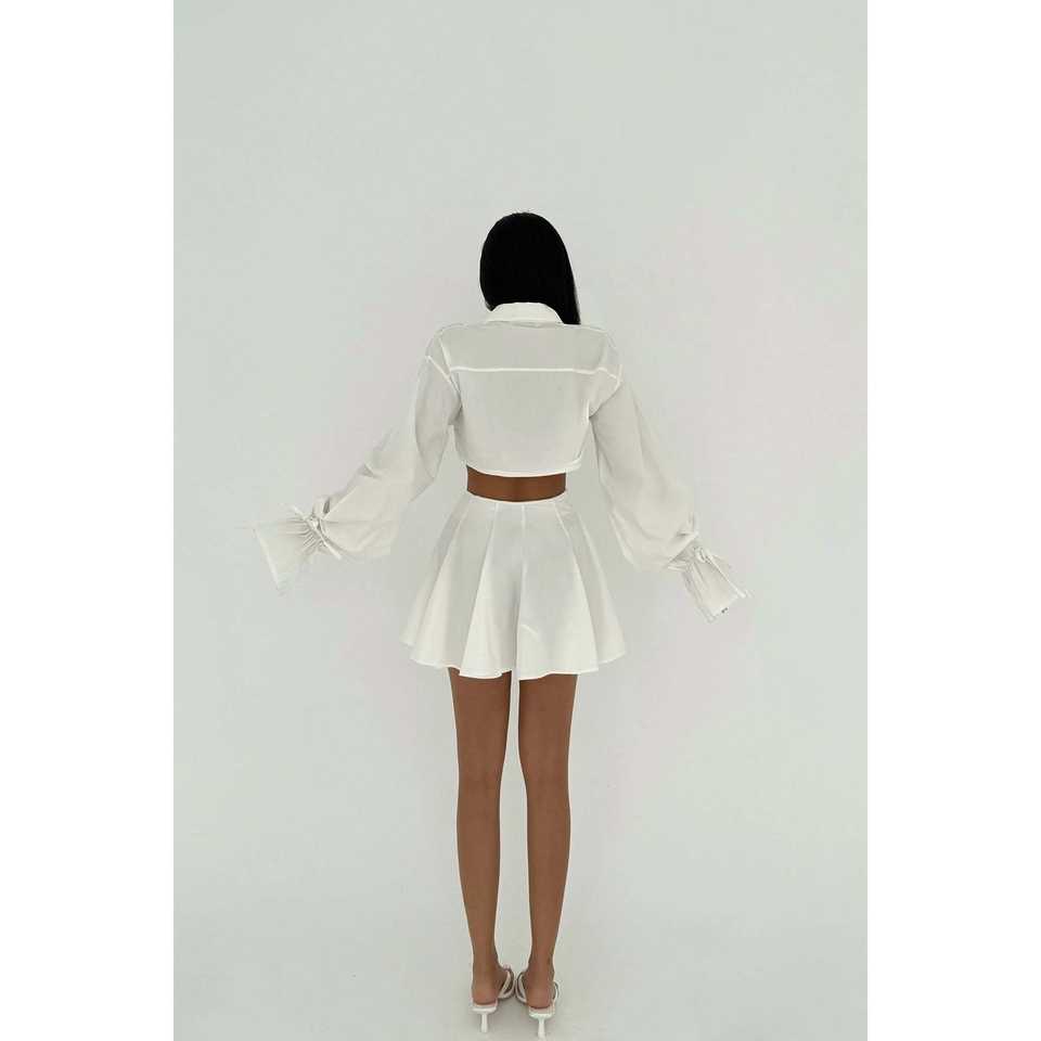 Conjunto de Dos Piezas Jila Blanco, Minifalda y Top con Cuello de Lazo, Conjunto de Shorts por Encima de la Rodilla