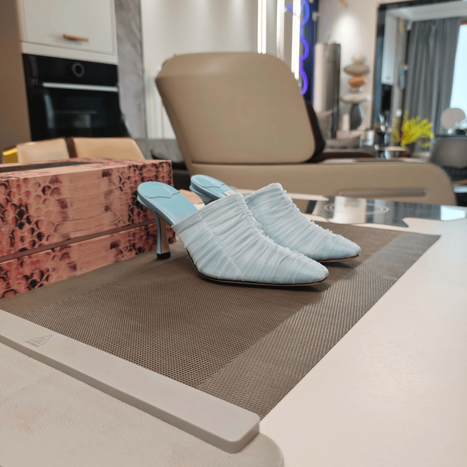Jimmy Sheer - Mules de tacón de aguja con malla fruncida y punta en pico, ideales para bodas, fiestas, eventos nocturnos y cócteles