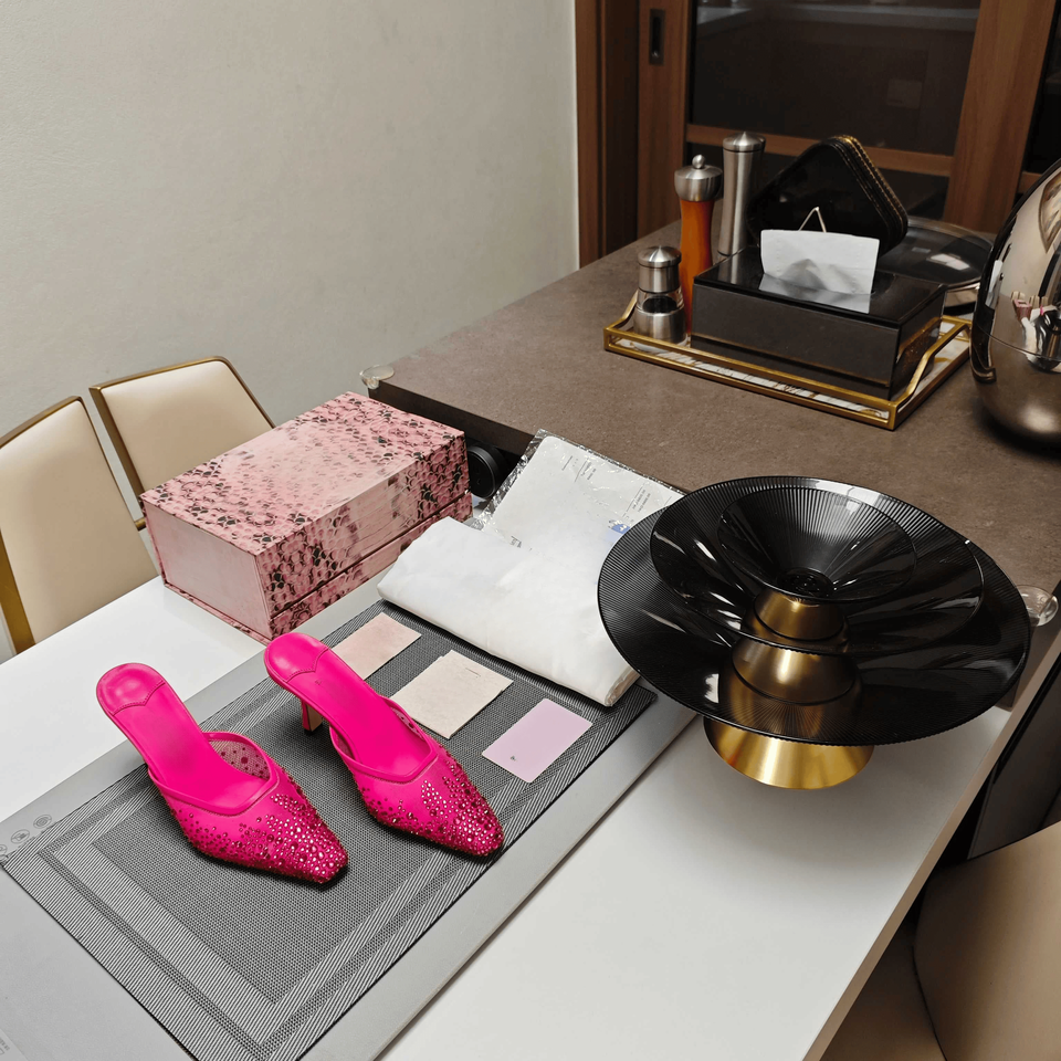 Jimmy Zapatos de Tacón Tipo Mule con Punta Puntiaguda y Adornos de Pedrería para Mujer, Elegantes Zapatos de Tacón para Bodas, Fiestas y Eventos Nocturnos