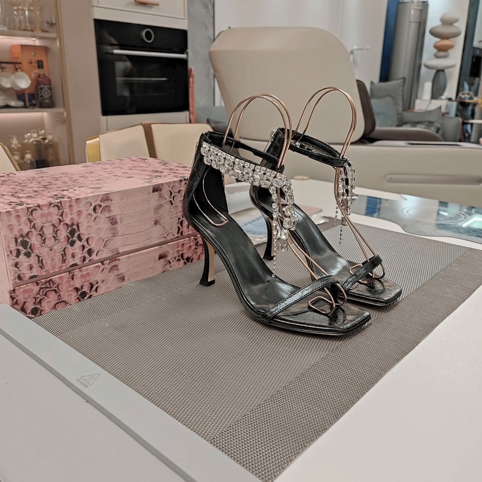 Jimmy Womens Square Toe Ankle Strap High Heel Sandals with Crystal Tassel Fashion Pumps for Date Night Chooing