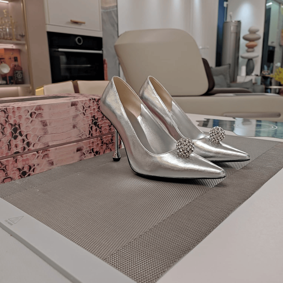 Zapatos de Tacón de Aguja con Punta Puntiaguda y Decoración de Diamantes de Imitación para Mujer, Elegantes y Modernos, Ideales para Salir de Noche, Fiestas y Citas