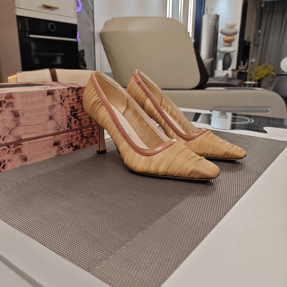 Zapatos de Tacón Jimmy para Mujer, Modernos, con Malla Transparente y Diseño Fruncido, Cómodos para Citas, Discotecas y Salidas de Fin de Semana