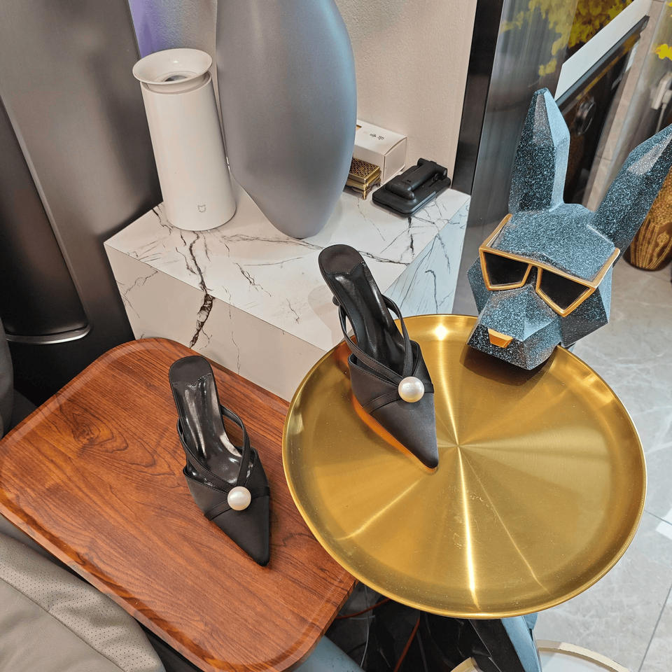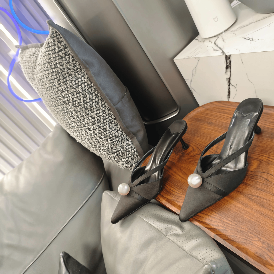 Mules Jimmy para Mujer, Versátiles, con Punta en Pico y Adorno de Perlas, Tacones Stiletto Cómodos sin Talón para Uso Casual y Formal