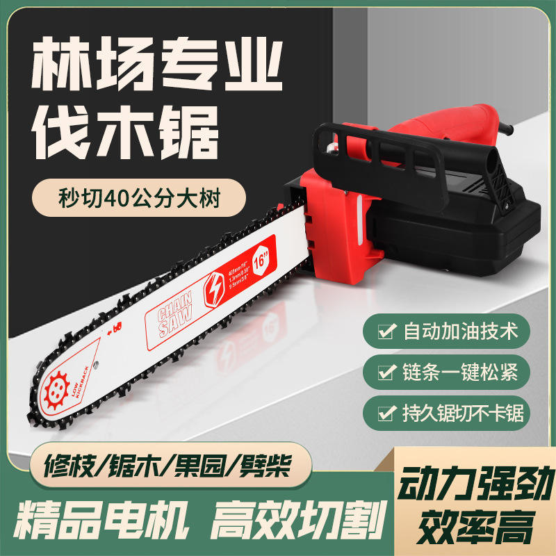 Motosierra eléctrica profesional de 16 pulgadas con cadena templada.
