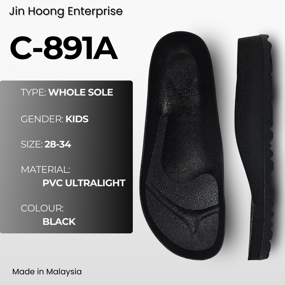 Jin Hoong C-891A para Niños, Suela de PVC Negra, Duradera, Ultraligera, Resistente al Agua, 38 mm de Grosor, Plantilla/Plantilla Interior Integrada Antideslizante