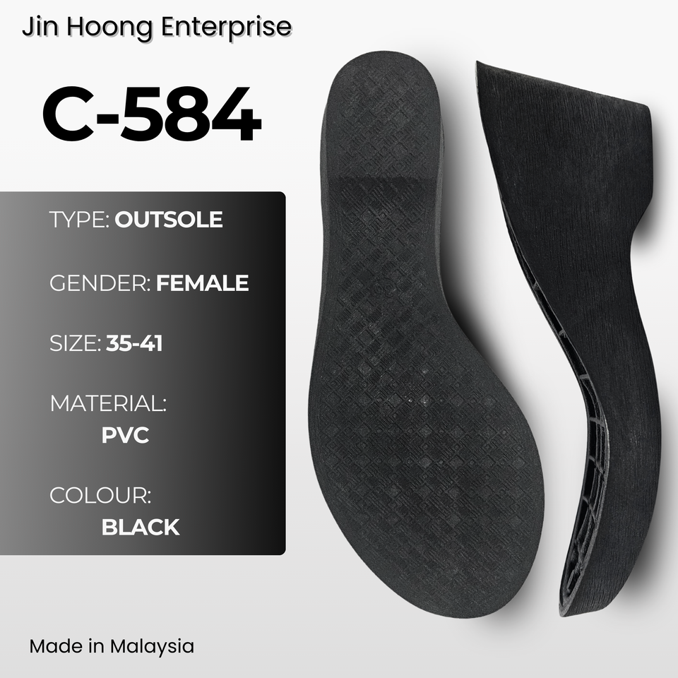Plataformas de PVC Antideslizantes y Duraderas para Mujer Jin Hoong C-584, Suela Negra Resistente al Agua, Grosor de 65 mm