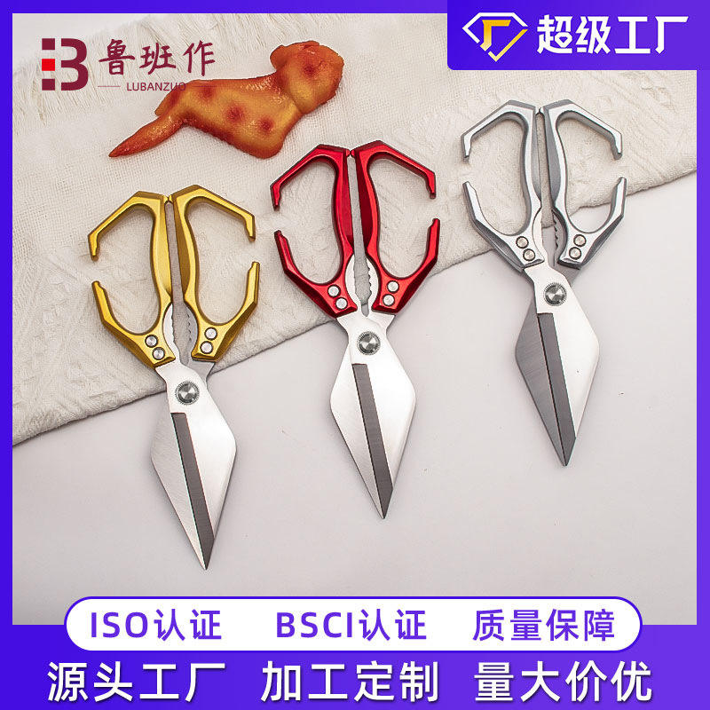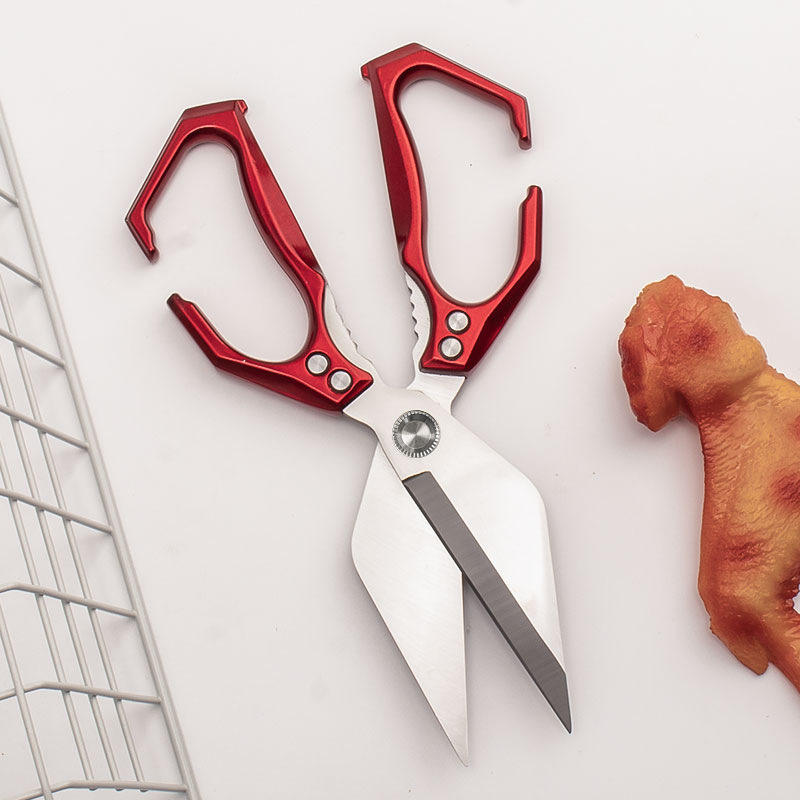 Tijeras de Cocina Jin Yan de Acero Inoxidable con Cabeza Grande para Cortar Huesos de Pollo, Uso Versátil, Color Rojo, Plateado y Dorado