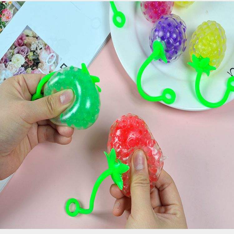 Jincan novedad pequeños juguetes para apretar niños fabricantes que venden fruta ventilación bola cuerda música pellizco juguetes gran puesto de tierra juguete