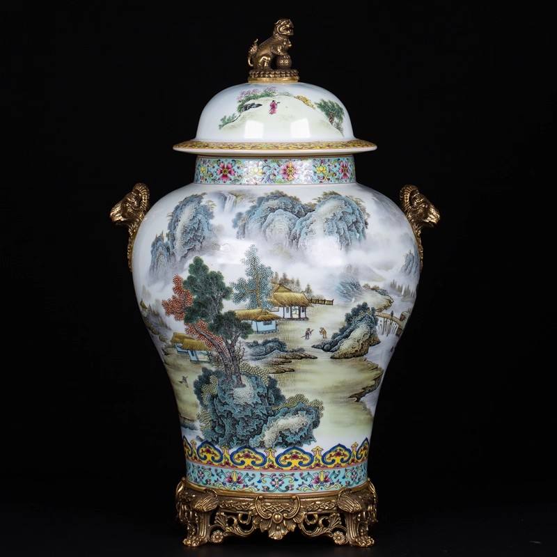 Jarrón de Porcelana de Jingdezhen, Estilo Art Deco, Paisaje Nupcial, León de Cobre, Bola Bordada, Cabeza de Oveja, Jarrón de Jengibre