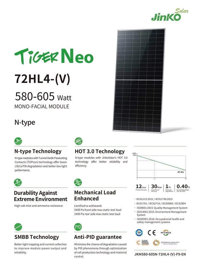 Número de Modelo:Jinko Tiger Neo 72HL4-(V) 580-605W
