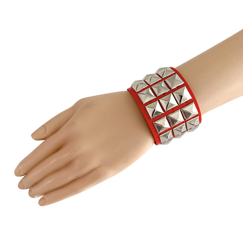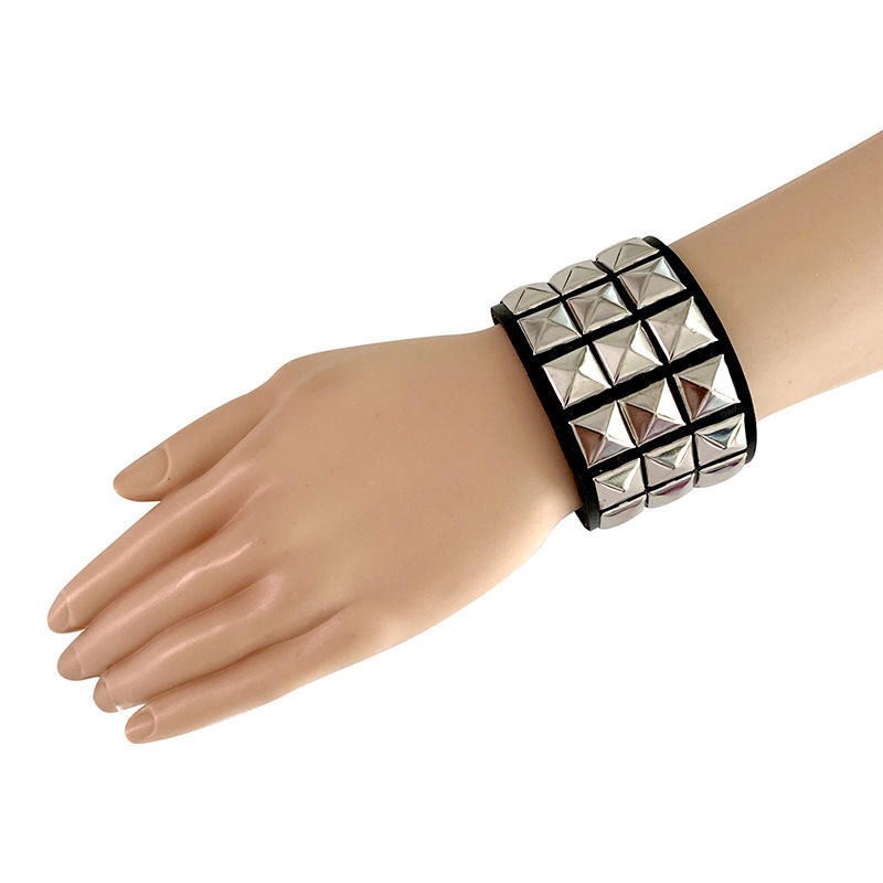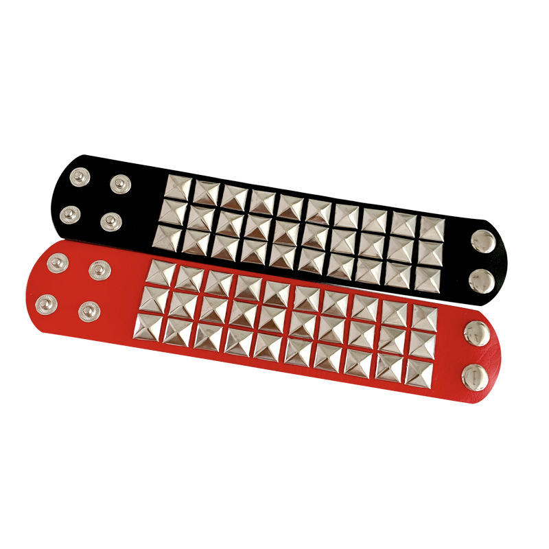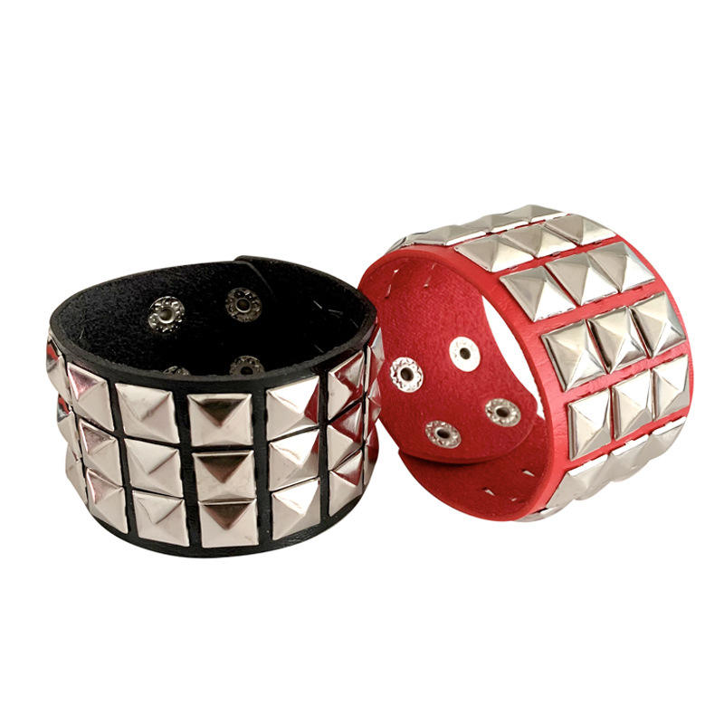 Jinlong [] Punk personalidad pulsera tres filas remachado cuadrado pareja moda cuero