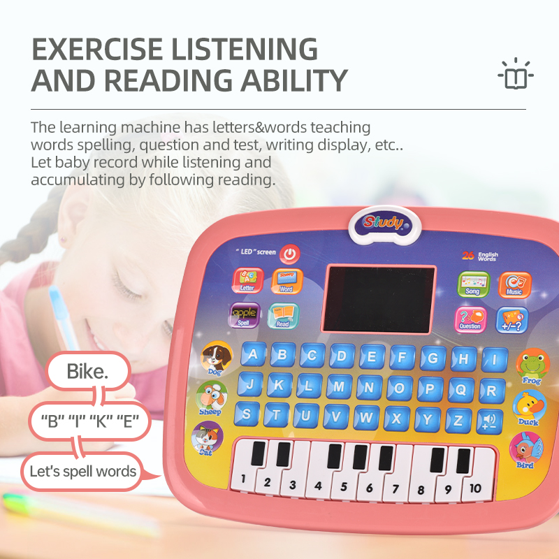 Computadora educativa para niños Jinming con pantalla LED 26 palabras en inglés Máquina Inteligente de aprendizaje de tabletas