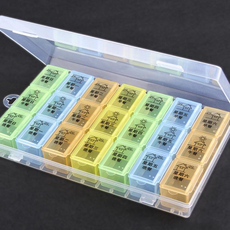 Caja de Almacenamiento Portátil Jinting a Prueba de Polvo para 7 Días, Dispensador de Pastillas de Plástico Transparente con 21 Compartimentos, Estuches para Guardar Pastillas