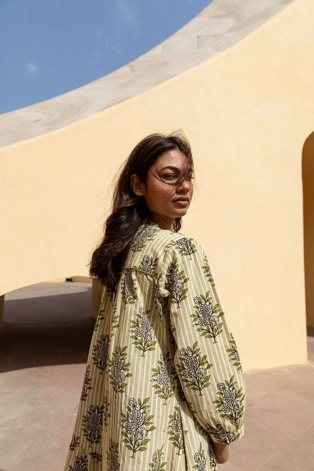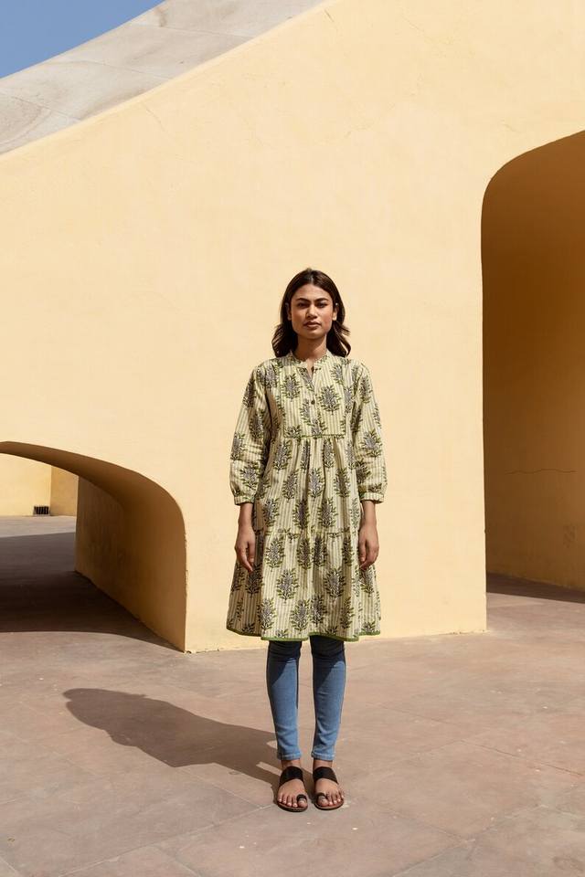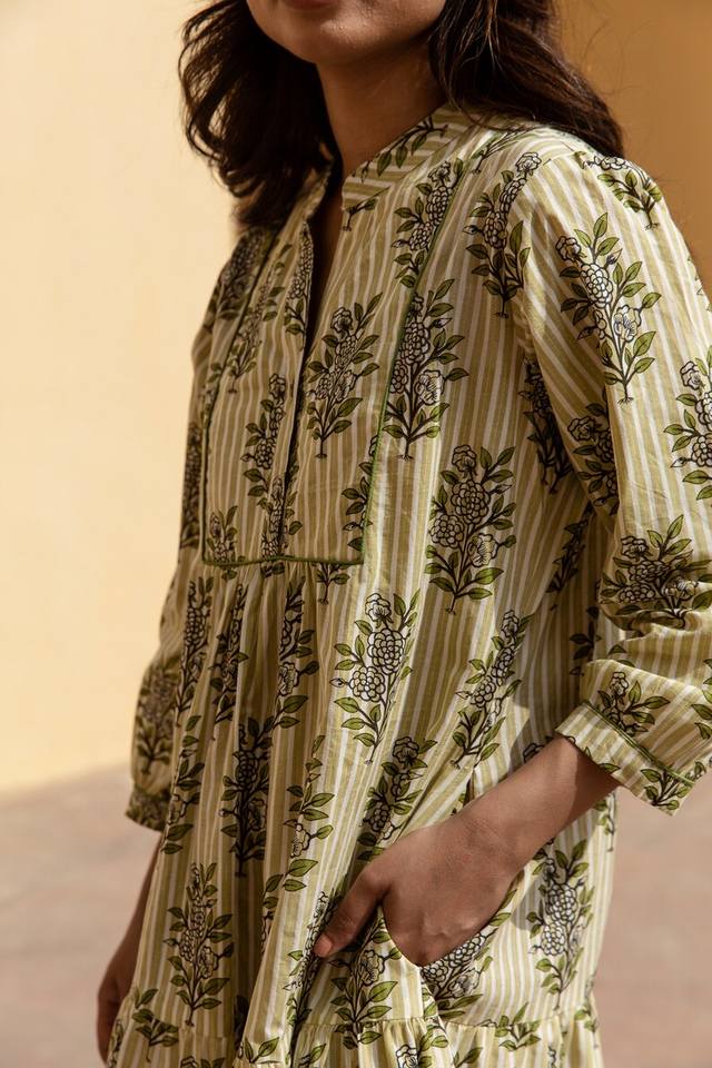 Vestido de Algodón Estampado a Mano Jivani, Estilo Bohemio, Informal, Veraniego, Moda Ética