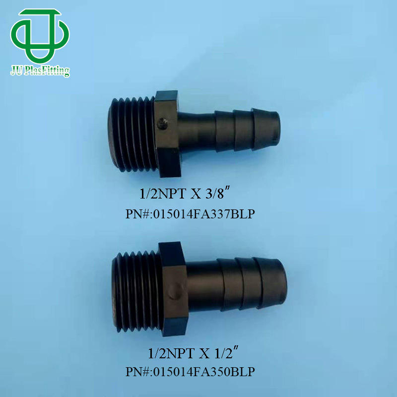 Conector de Manguera de Goma Recta de Plástico PP de 3/4 Pulgadas Jiyou, Rosca NPT de 1/2 a Rosca Externa de Tres Pagodas para Mangueras de Plomería