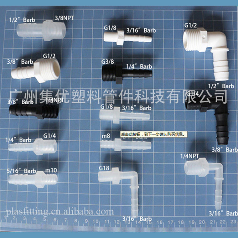 Conector de Tubería de Plástico PP Roscado Jiyou M8 con Conexión de 3/16 para Uso con Gas y Agua