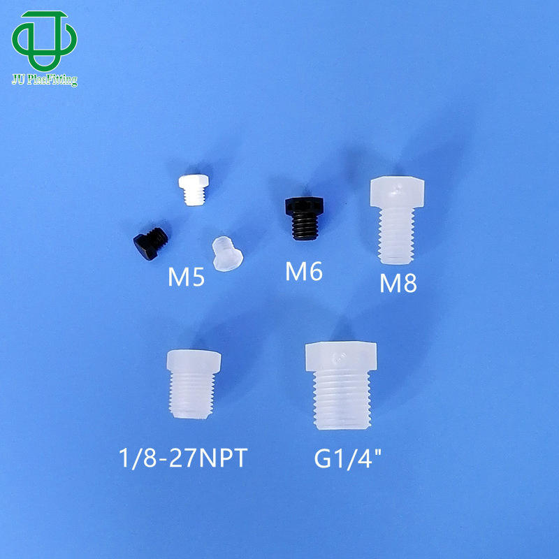 Conector de Tubería Jj, Tapón Roscado M6, Plástico PP Negro, Rosca Métrica Gruesa, Totalmente Roscado, Rosca Derecha, Cumple con RoHS